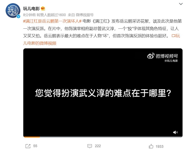 《满江红》是岳云鹏第一次演坏人:角色让人又笑又怕?今日消息,据媒体报道,电影《满江红》发布岳云鹏采访花絮,谈及此次是他第一次演反派。在片中,他饰演宰相府副总管武义淳,一个“狡”字体现其角色特征,让人又笑又怕。岳云鹏表示最大的难点在于人物“坏”,但首次饰演反派的体验也挺好。导演张艺谋表示,作为导演,就要在角色上不断挖掘塑造鲜活生动的