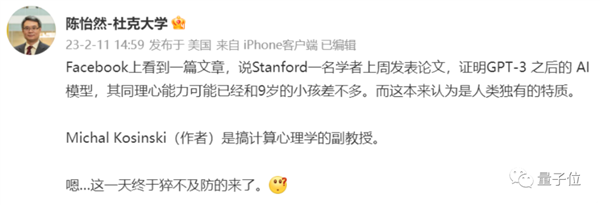ChatGPT背后模型被证实具有人类心智!斯坦福新研究炸了?ChatGPT原来是拥有心智的?!“原本认为是人类独有的心智理论(Theory of Mind,ToM),已经出现在ChatGPT背后的AI模型上。”这是来自斯坦福大学的最新研究结论,一经发出就造成了学术圈的轰动:这一天终于猝不及防地来了。所谓心智理论,就是理解他人或自己心理状态的能力,包括同理心、情绪、意图