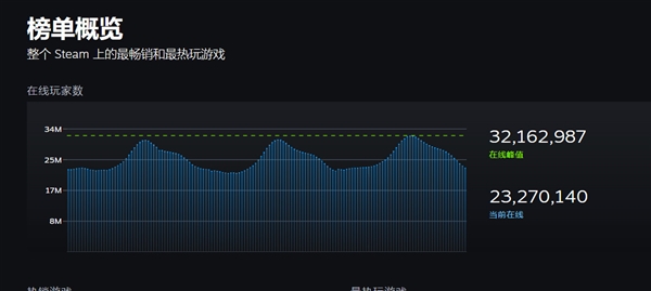突破3200万!Steam同时在线再创新高?去年10月,Steam的同时在线人数首次突破3000万,创下了新纪录。今天,根据Steam官方最新数据,Steam的同时在线人数再次创下新高,超过3200万,达到了3216万2987人,正在游戏中人数突破1000万。在这期间,《荒野大镖客2》Steam在线人数再创新高,同时在线达到了66539人。目前,Steam在线人数最多的两款游戏依旧是《CS:GO》