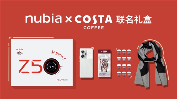 努比亚Z50联名Costa咖啡:限量礼盒12 512GB 4199元?12月19日,努比亚正式发布了新一代影像性能旗舰Z50,搭载35mm定制光学系统、第二代骁龙8移动平台,并有着鲜明个性的红圈影像设计。同时,努比亚还携手咖啡文化的经典代表、全球年轻人喜爱的咖啡品牌Costa(咖世家),推出了一个限量的冬日联名礼盒套装,内含努比亚Z50手机一部、Costa冬日暖心围巾一条、Cos
