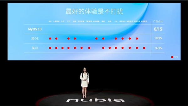 业界良心!努比亚MyOS 13成为国产最纯净手机系统:没有系统广告?今日消息,努比亚Z50正式发布。该机预装最新的MyOS 13操作系统,在发布会上,努比亚徐可馨特别提到,MyOS 13零广告。和竞品OS对比看出,努比亚MyOS 13在音乐、主题壁纸、日历、天气、视频、手机管家、下载管理、运动健康、搜索、锁屏、卡包、语音助手、智慧生活、全球上网、游戏助手等一系