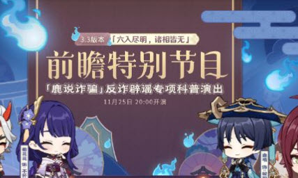 原神3.3版本前瞻直播兑换码是什么原神3.3版本11月25日开启了直播,直播也公布了一些的兑换码可以兑换到,本文为大家分享原神3.3版本前瞻直播兑换码一览 ,想知道的玩家们不要错过哦。